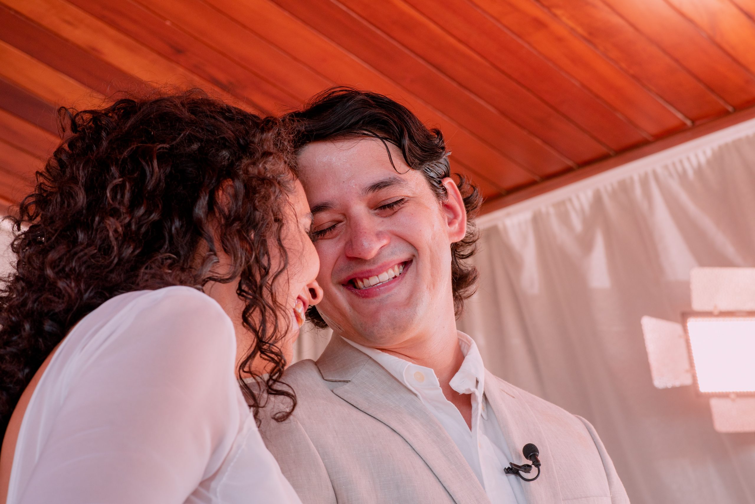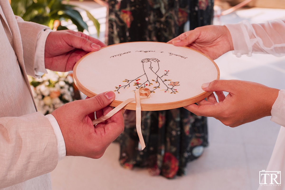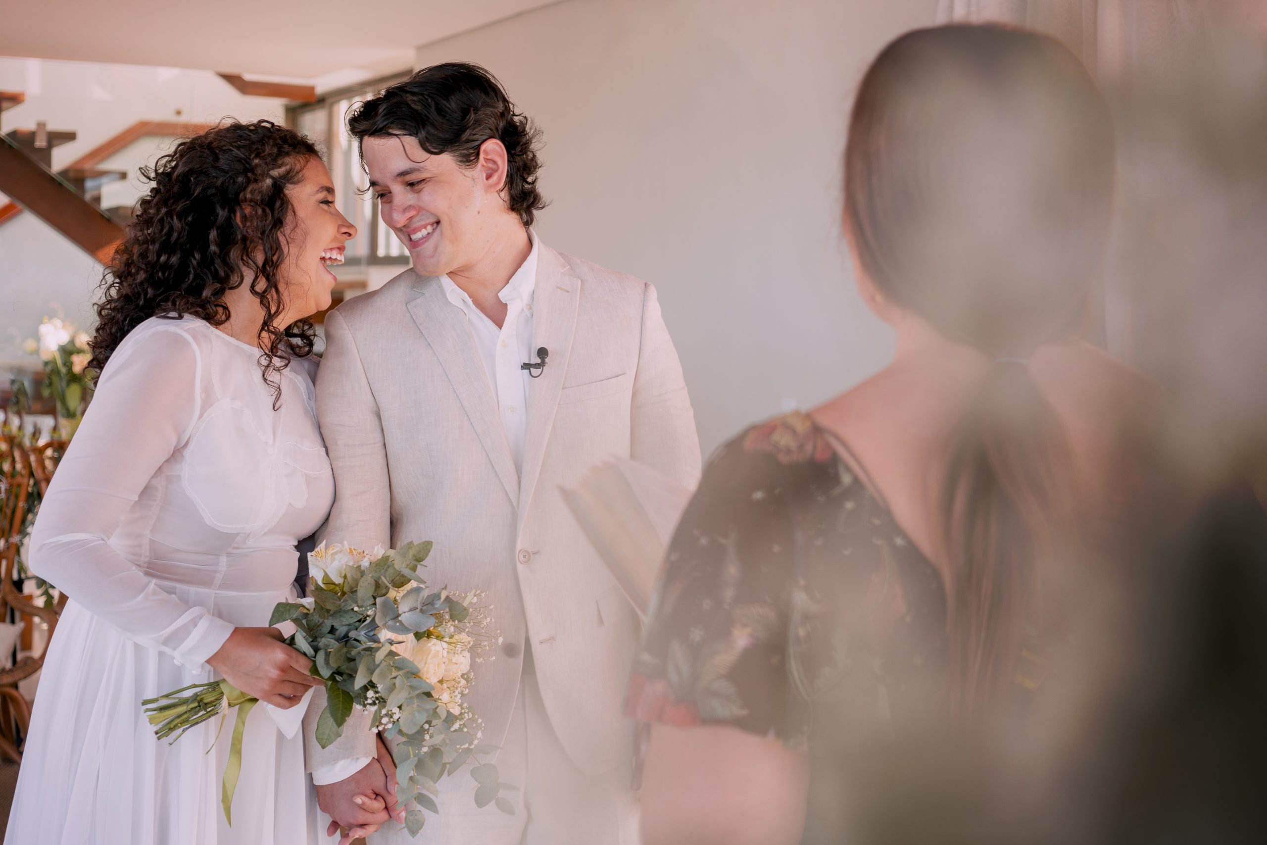 Por todo o contexto do momento, eles optaram por fazer a cerimônia a dois com uma transmissão ao vivo para os amigos e familiares. Achei incrível que isso ganhou uma outra conotação para eles: não de frustração ou pesar, mas de alegria pela oportunidade de compartilhar. Isso porque o Felipe tem amigos e familiares muito próximos espalhados por três países, então, se não fosse por este formato “novo”, que sequer existia pouco tempo atrás, muitas destas pessoas não teriam testemunhado o casamento. Foi uma limonada gostosa feita com os limões que a vida deu!