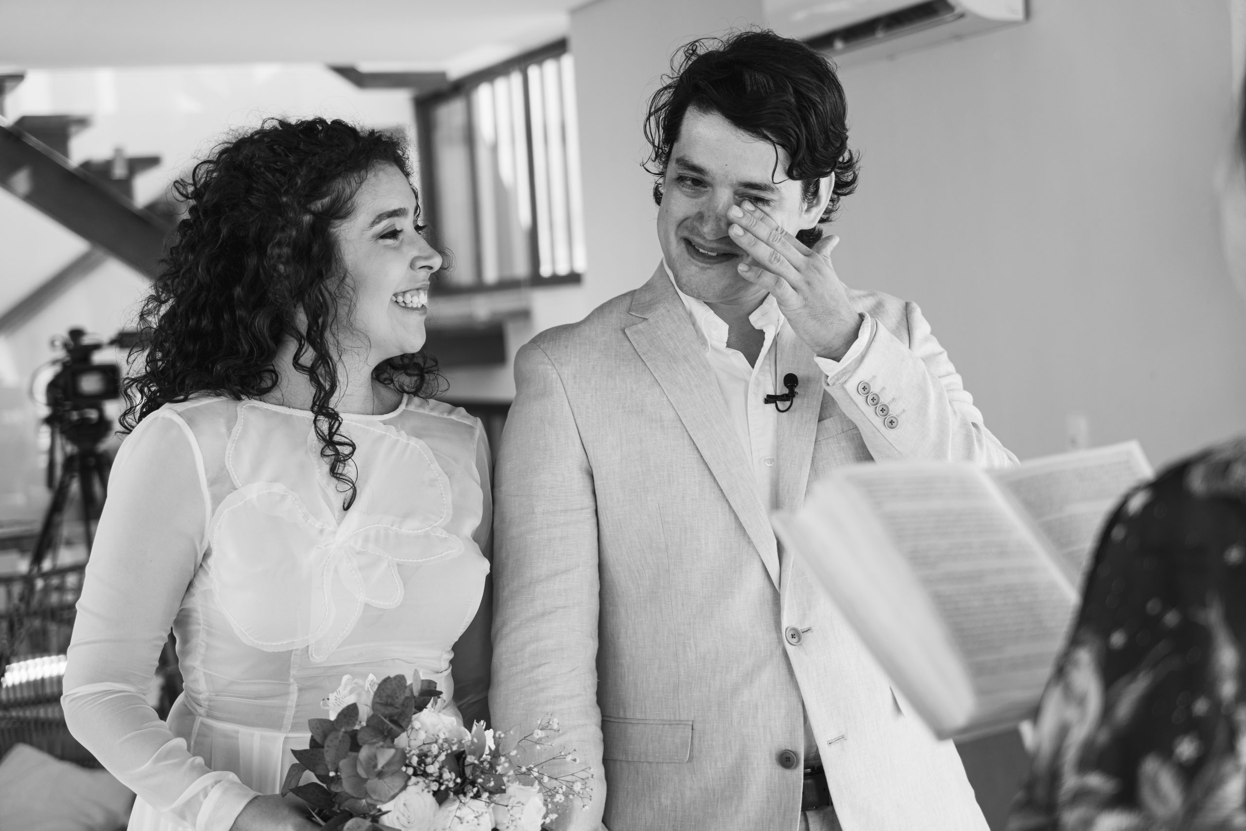 E, logo antes de iniciarmos, na hora que seria a “entrada” do cortejo, eu enviei para os dois um audio das mães deles, dizendo exatamente as palavras que diriam se estivessem ali. Foi uma emoção bonita de ver!